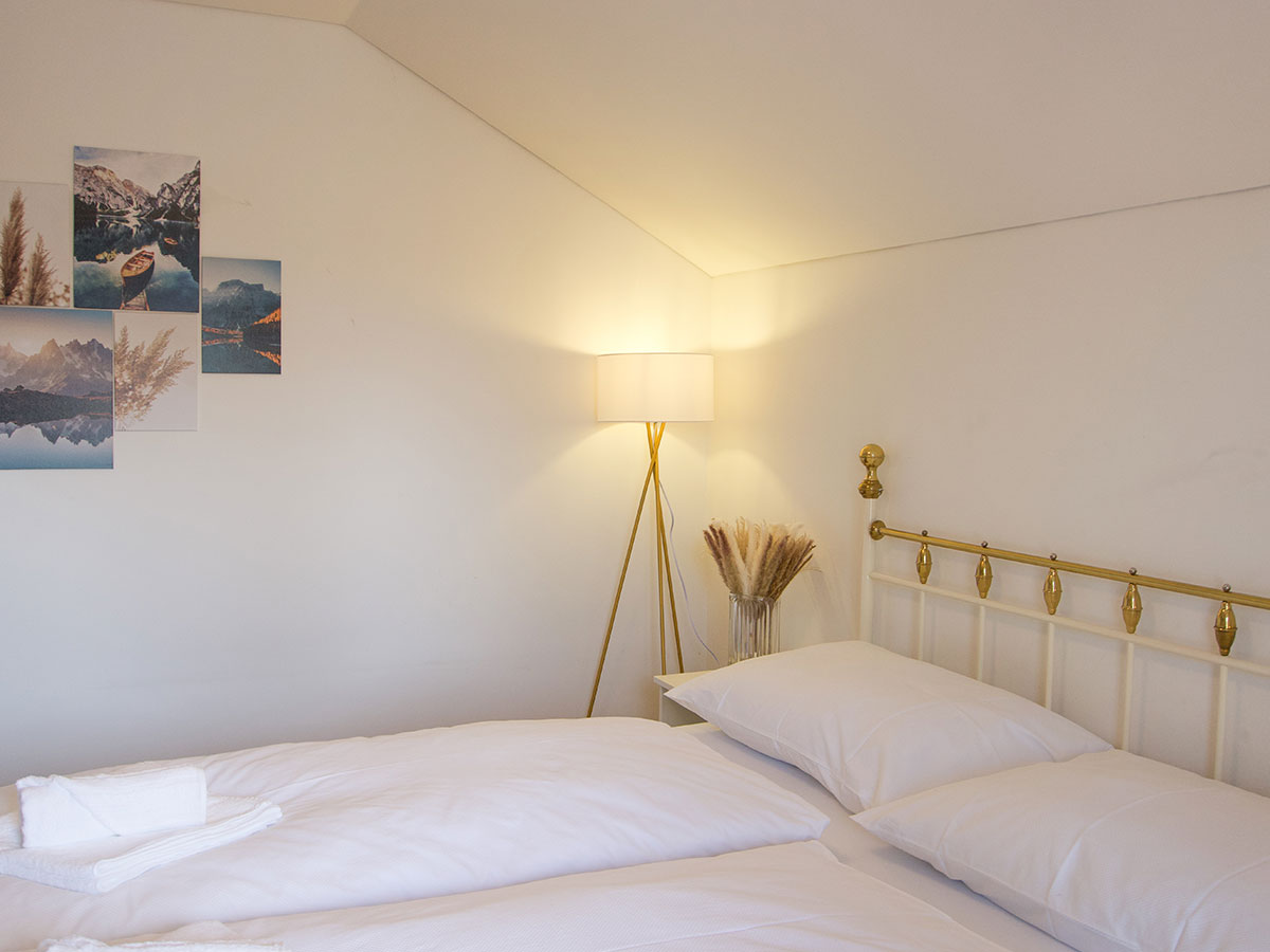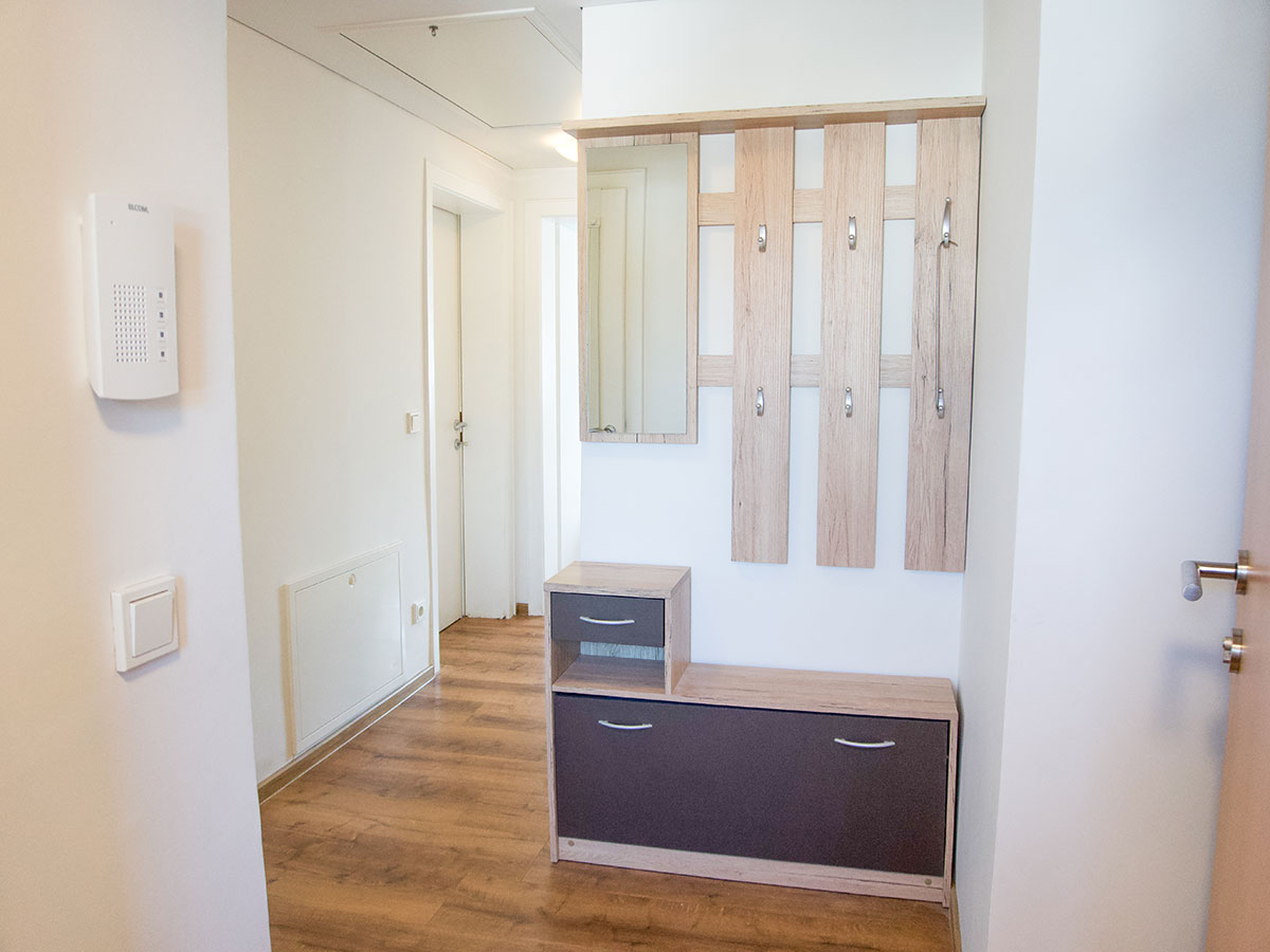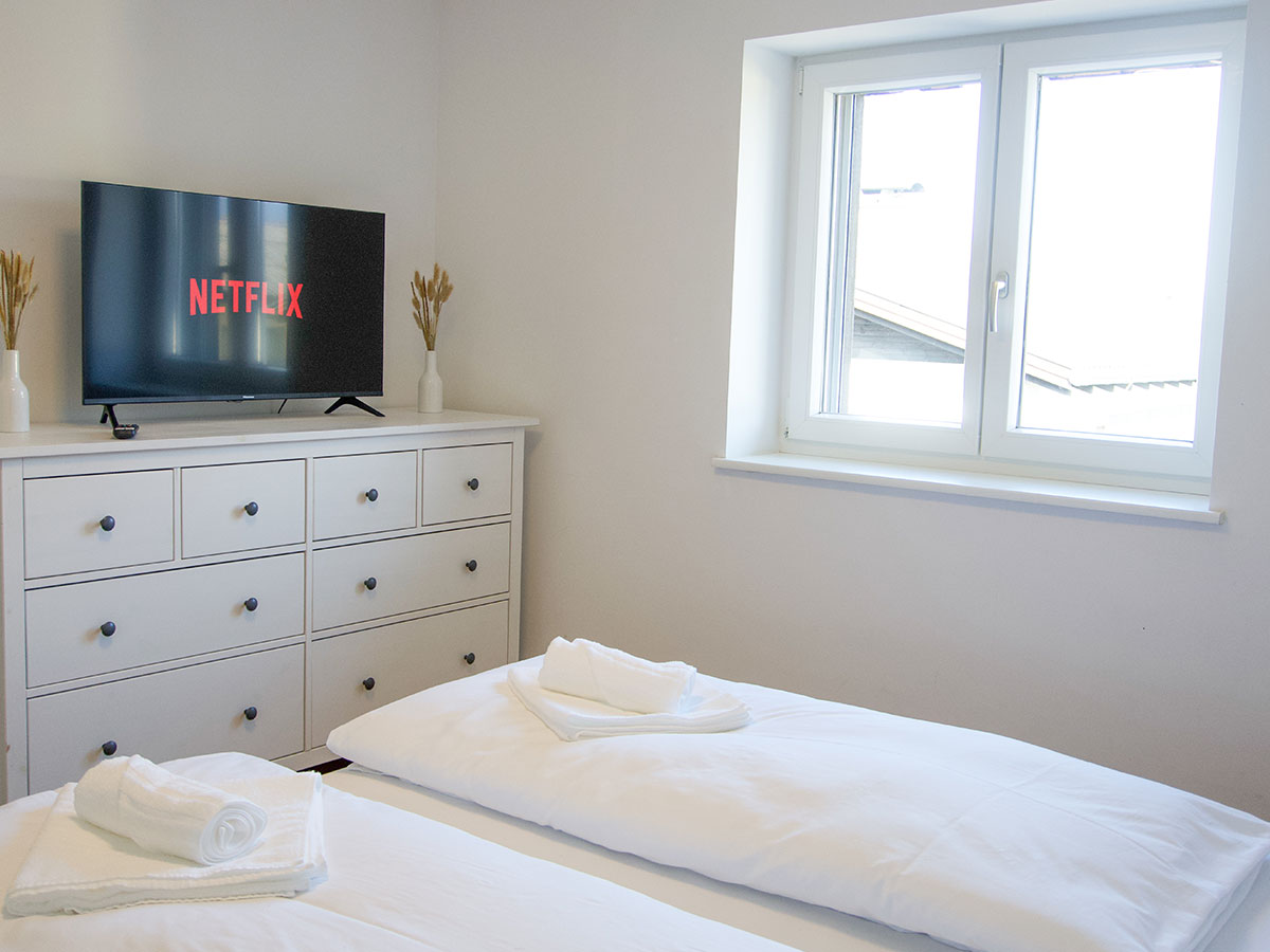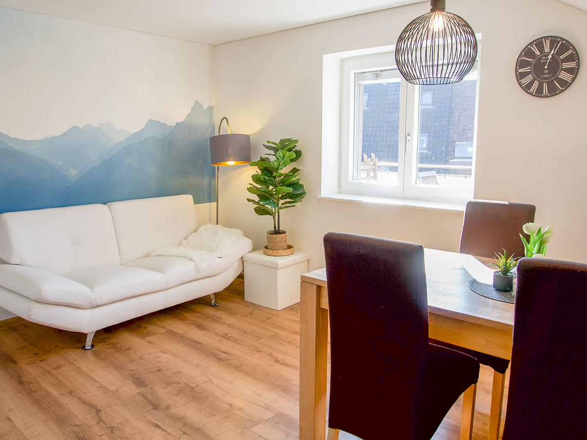 zweiten Stock und bietet zwei gemütliche Schlafzimmer mit Doppelbetten, ein helles Wohnzimmer mit integrierter Küche sowie ein Badezimmer mit Dusche und WC. Trotz der zentralen Lage ist die Wohnung ruhig und bietet eine entspannte Atmosphäre für Ihren Aufenthalt. Zudem stehen Ihnen zwei Parkplätze zur Verfügung. Genießen Sie den großzügigen Wohnraum und die traumhafte Aussicht auf die umliegenden Berge, während Sie Ihren Aufenthalt in Dornbirn genießen.