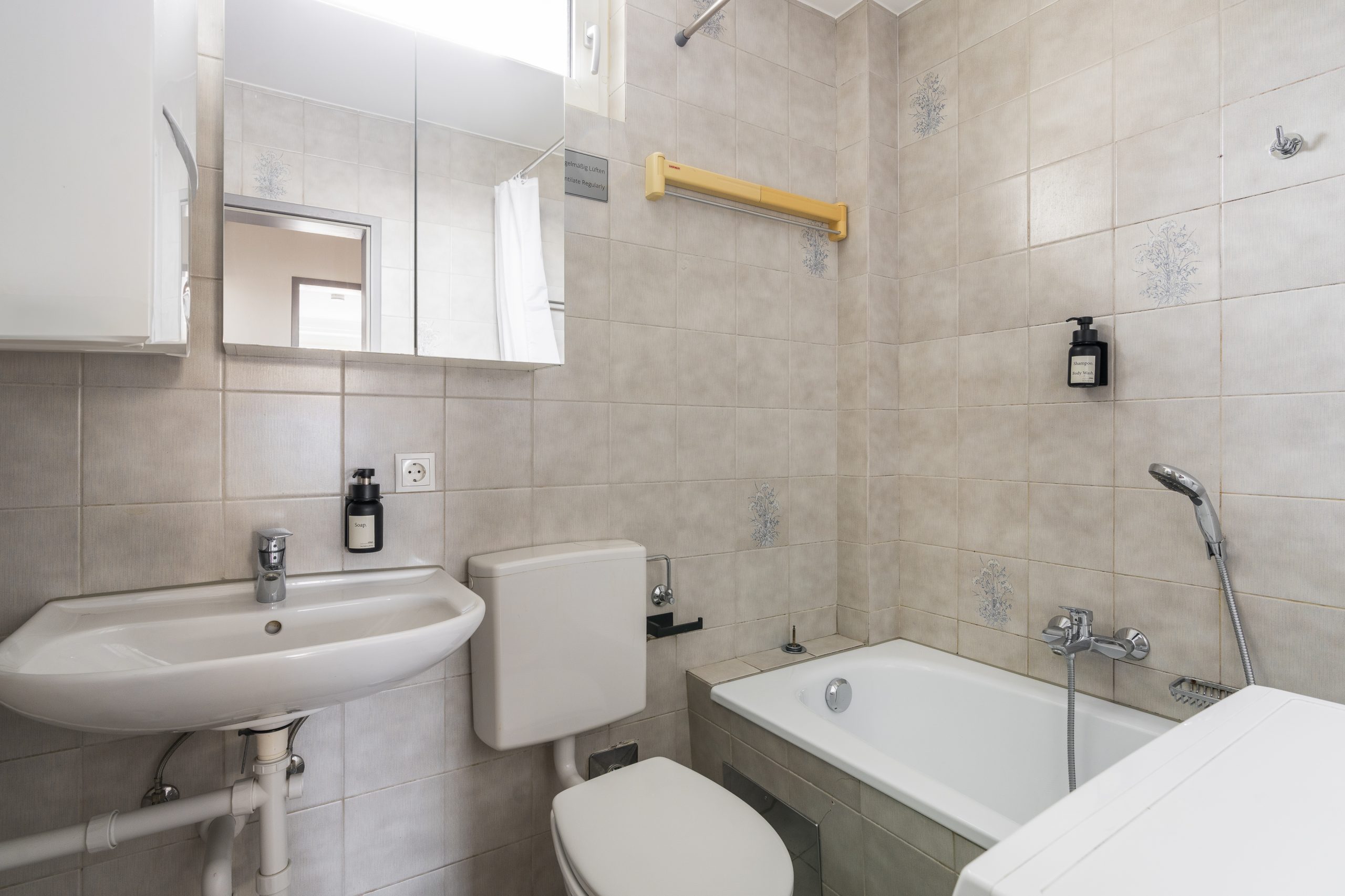 Dieses großzügige Apartment im zweiten Stock besticht durch ein einladendes Wohnzimmer, drei separate Schlafzimmer und ein komfortables Badezimmer mit Badewanne und integrierter Dusche. Kostenlose Pflegeprodukte stehen ebenfalls zur Verfügung. Zwei der Schlafzimmer sind jeweils mit einem Doppelbett ausgestattet, das dritte verfügt über ein Doppelbett und ein Einzelbett – ideal für Familien oder kleine Gruppen.
