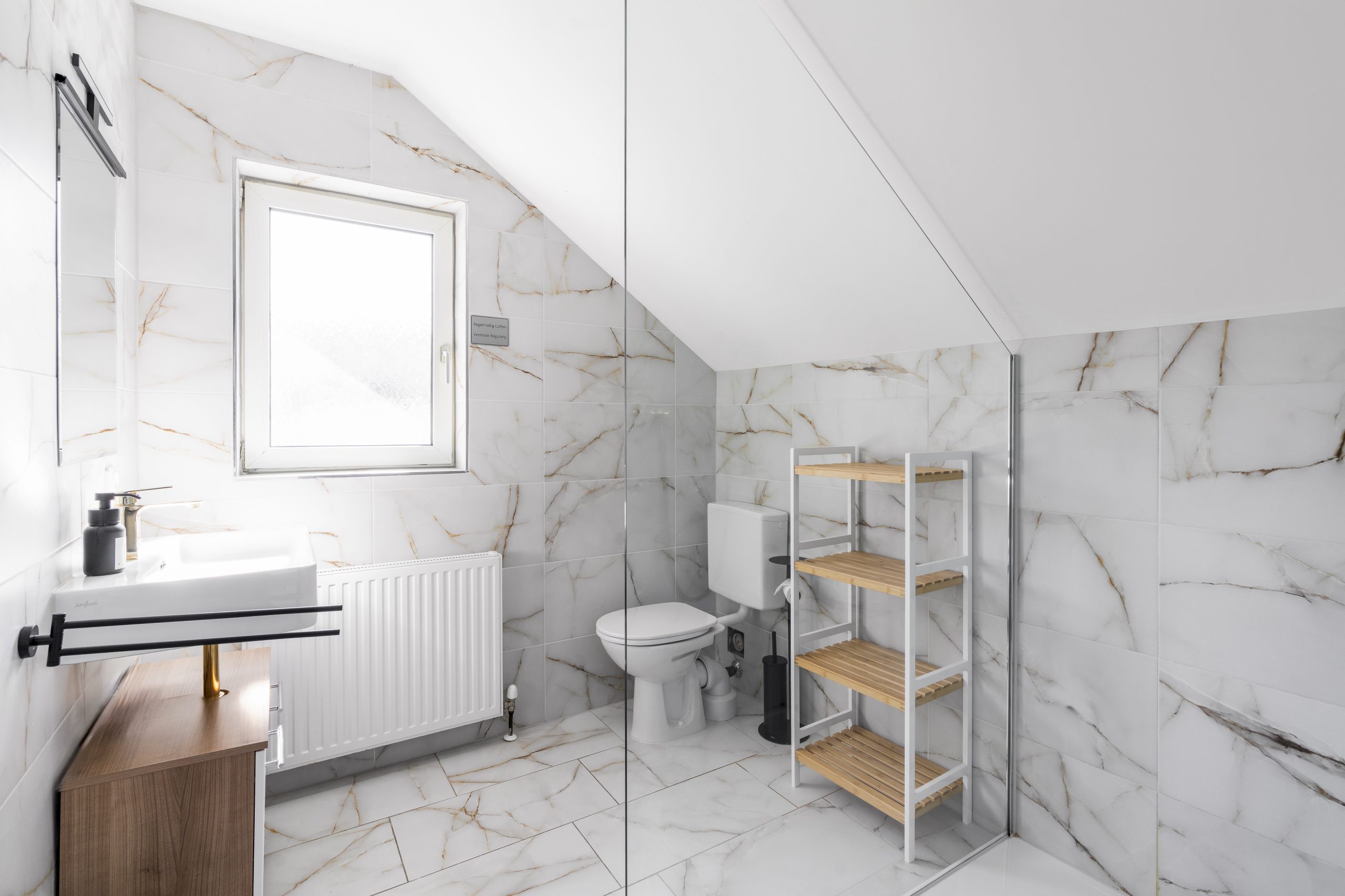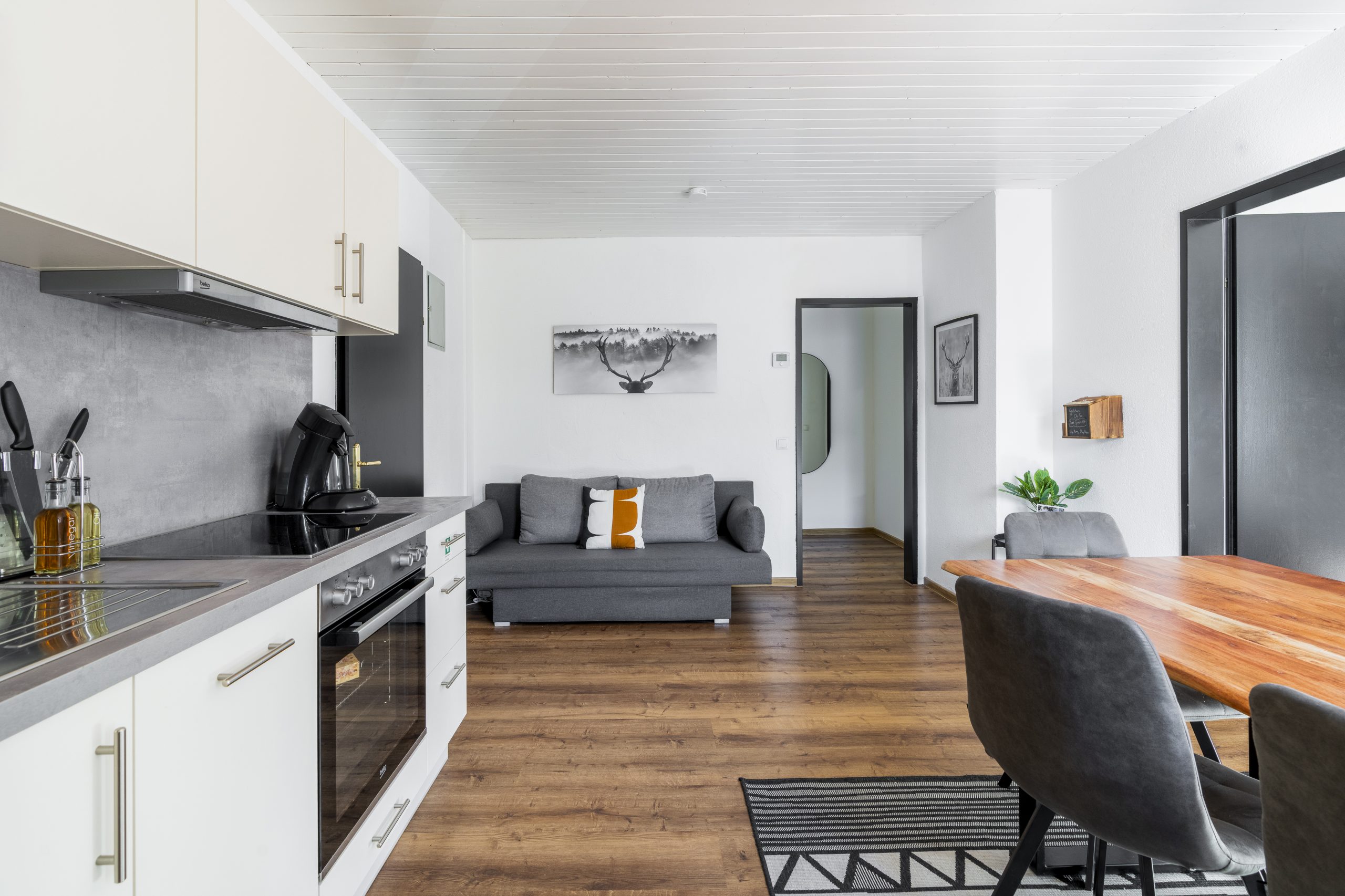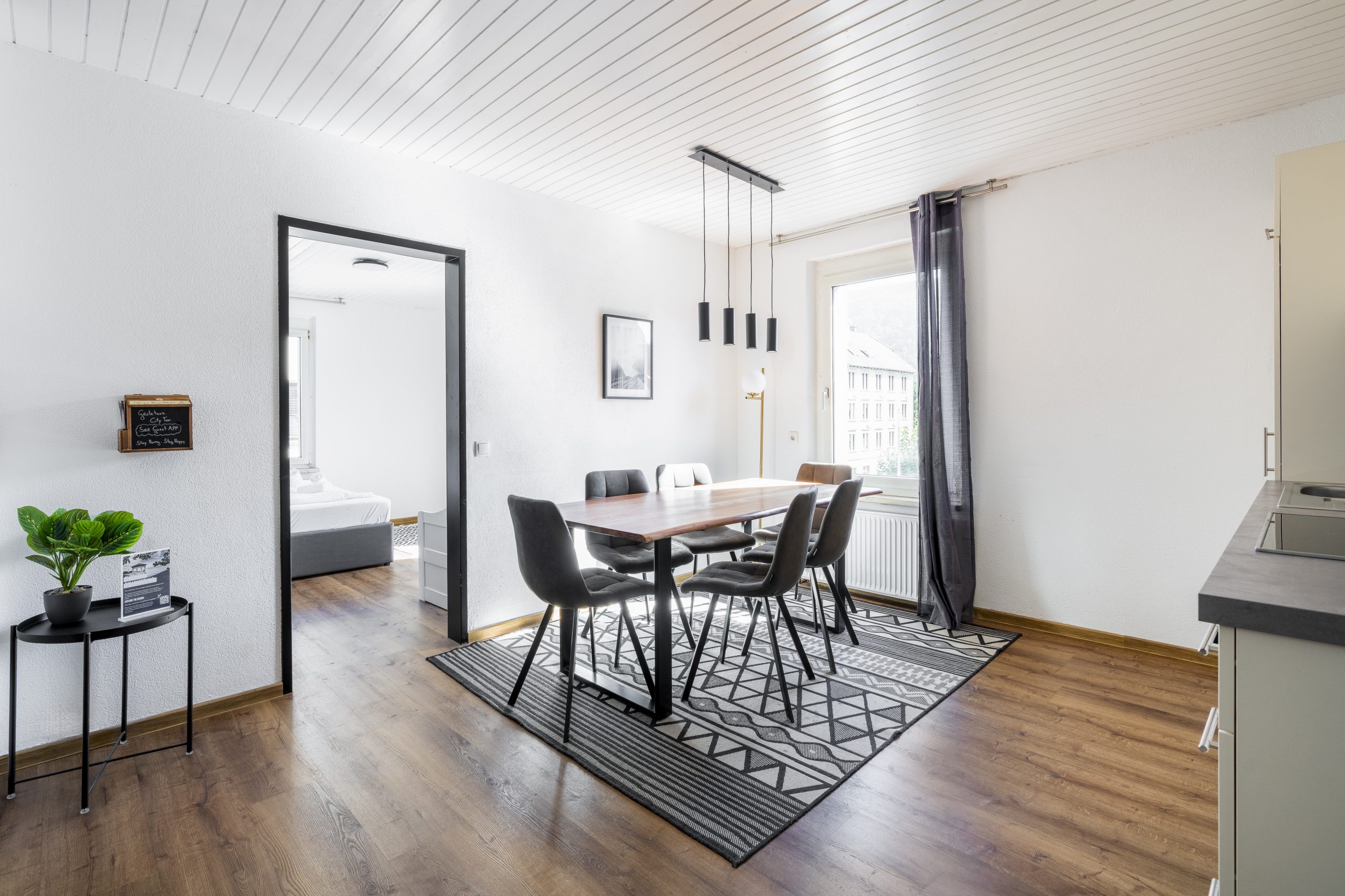 Zur weiteren Ausstattung gehören ein Flachbild-TV mit Streaming-Diensten, eine Waschmaschine, ein eigener Eingang sowie schallisolierte Wände für maximale Ruhe und Privatsphäre. Genießen Sie außerdem den herrlichen Ausblick auf die umliegenden Berge.